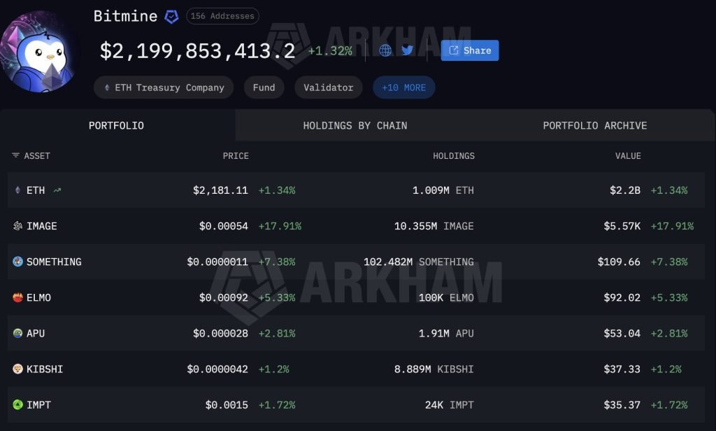 • Treasury Signal: Bitmine now holds 4.661 million ETH — 3.86% of Ethereum’s circulating supply of 120.7 million tokens — with 3.14 million already staked, generating an estimated $272 million annually at a 2.83% yield.