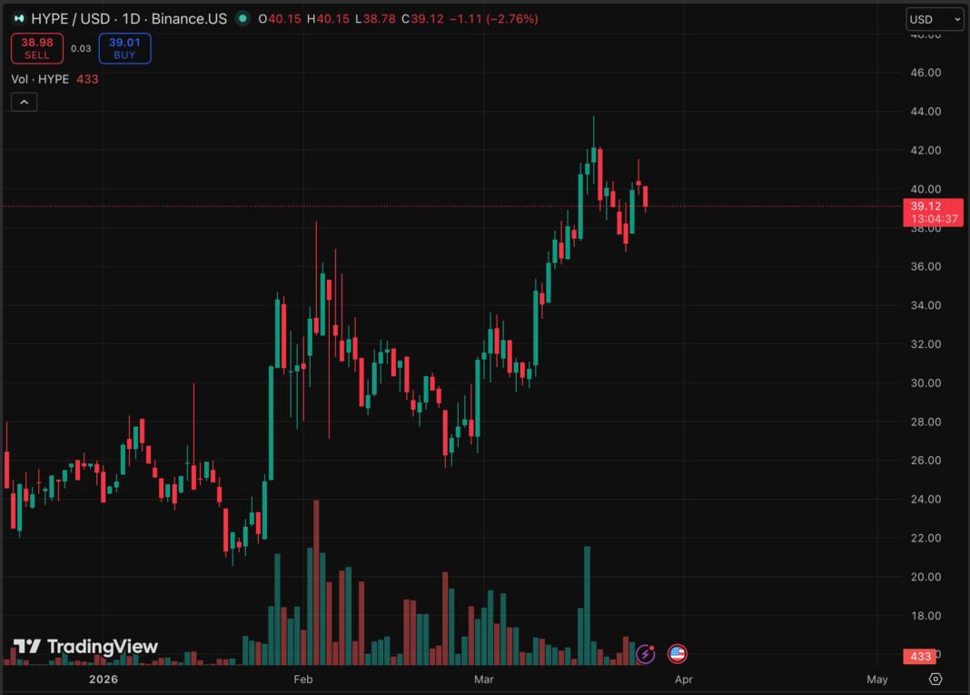 Hyperliquid’s HYPE is trading at $39, down almost 4% in the last 24 hours, but in the longer-term, the price chart tells a different prediction. A rising channel pattern in place since January 2026 remains structurally intact, and the question of whether $50 is achievable isn’t as outlandish as the daily candle suggests.
