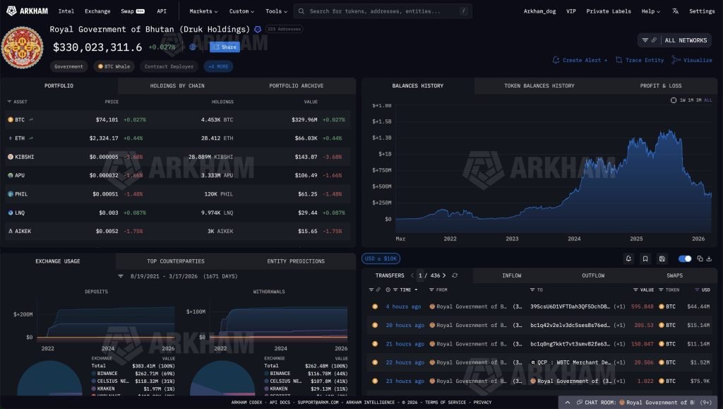 Arkham Intelligence confirmed funds cleared directly from DHI wallets into Binance hot wallets. Bhutan’s total BTC outflows have exceeded $114 million in recent weeks.